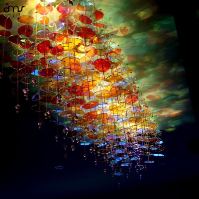 創(chuàng)意彩色玻璃圓盤串串空中燈飾會所酒吧餐廳咖啡廳藝術(shù)吊燈