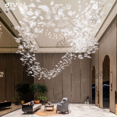 國外創(chuàng)意新款翅膀羽毛空中吊飾復(fù)式別墅酒店會所大廳售樓處吊燈