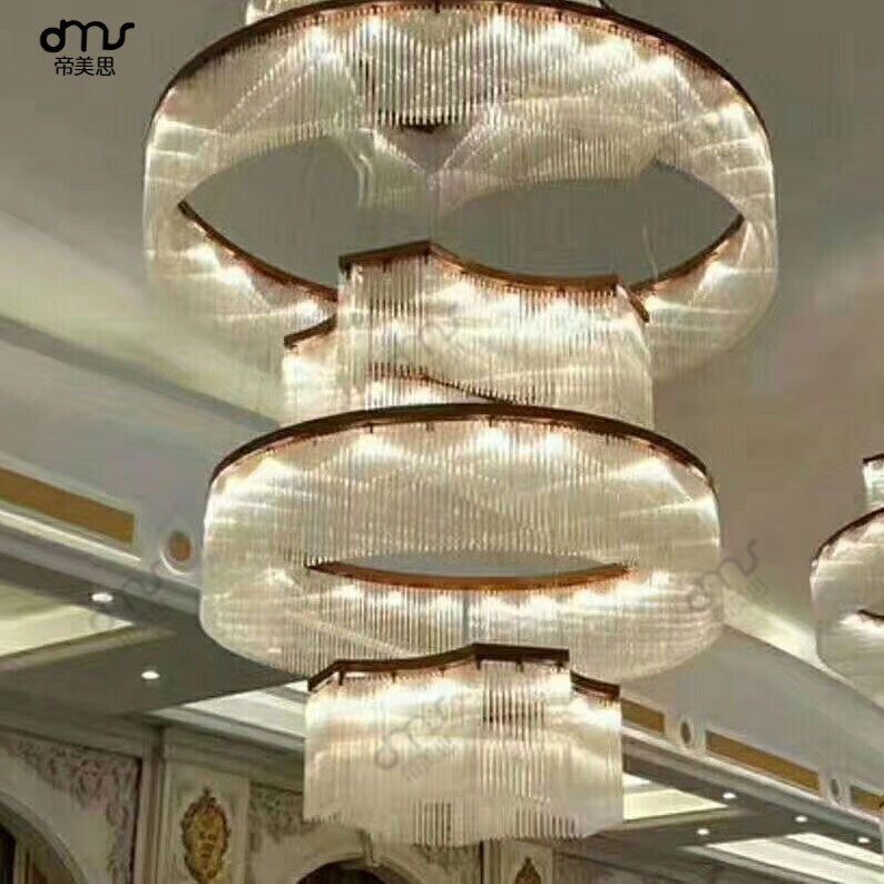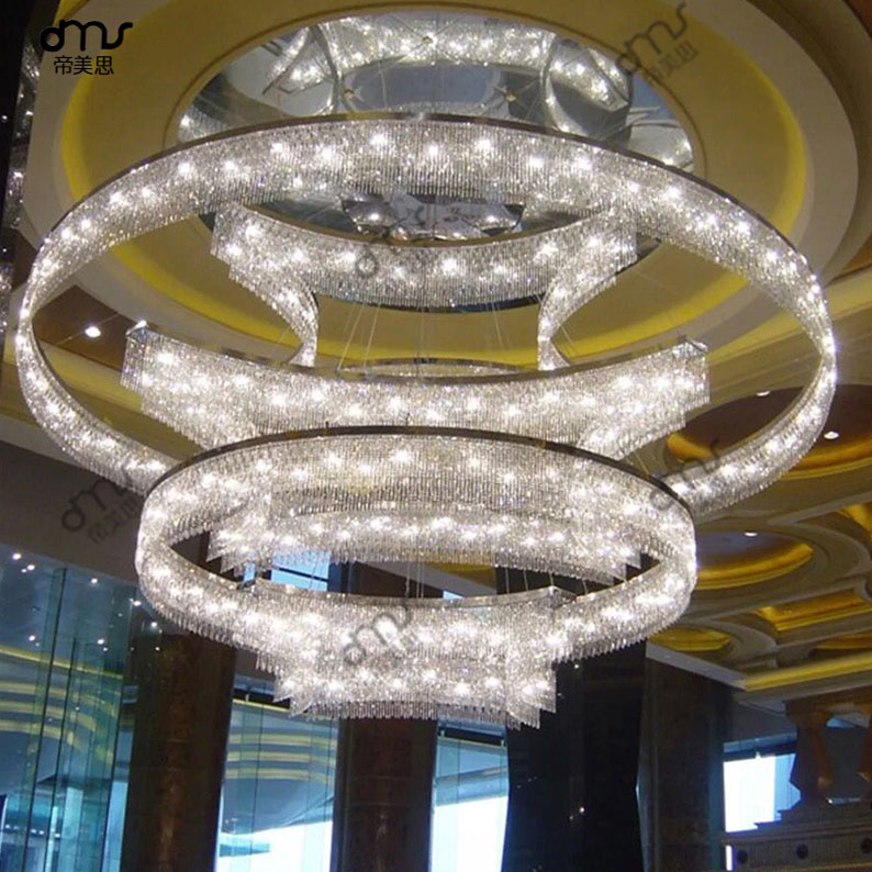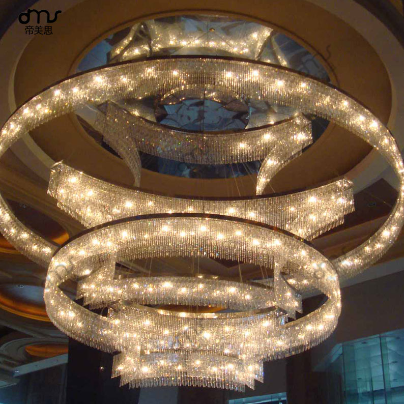 后現(xiàn)代圓環(huán)圈組合玻璃水晶大型吊燈