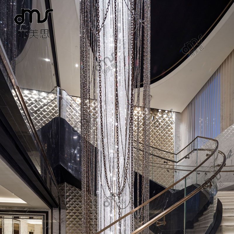 后現(xiàn)代創(chuàng)意個性鐵鏈流蘇水晶大型吊燈